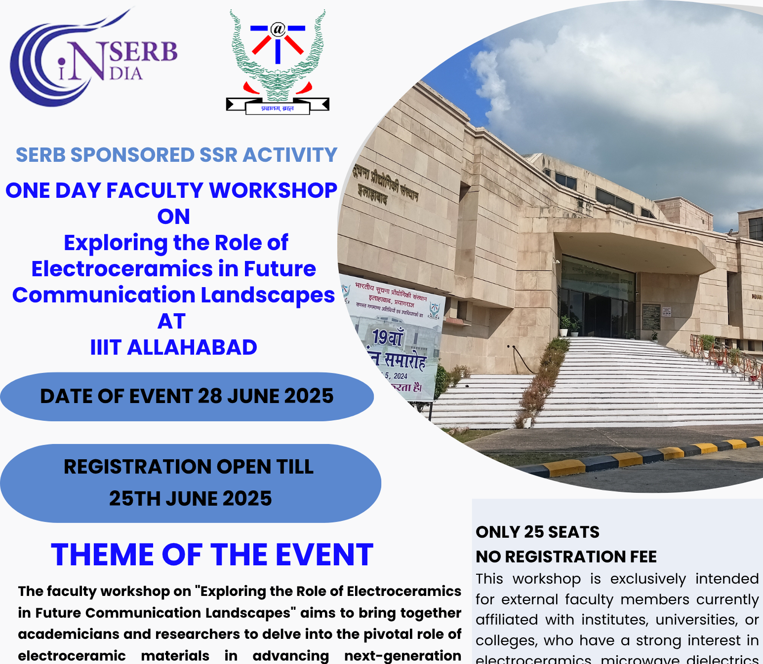 The Faculty Workshop on "Exploring the Role of Electroceramics in Future Comm. Landscapes" at IIITA brought together researchers to discuss electroceramics for advancing 5G, 6G, and mm-wave comm. technologies.